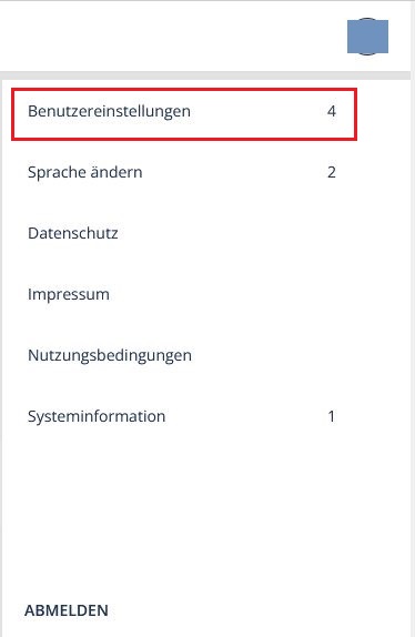 In den Benutzereinstellungen haben Sie folgende Auswahlmöglichkeiten: