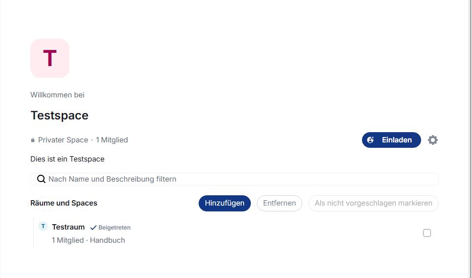 Wenn Sie einen neuen Space erstellen möchten, klicken Sie auf Neuen Space erstellen (Pluszeichen). Näheres dazu finden Sie > hier.