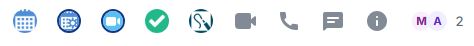 - Erweiterungen: Aktivierte Widgets werden aufgelistet (in Besprechungsräumen). Schaltfläche Anheften bzw. Nicht mehr anheften (Heftzweckensymbol), um die verschiedenen Widgets nebeneinander im Arbeitsbereich anzuzeigen oder auszublenden. Schaltfläche Layout für alle festlegen ist nur in Besprechungsräumen verfügbar: Das Aussehen des Arbeitsbereiches wird für alle Personen im Raum vereinheitlicht.
